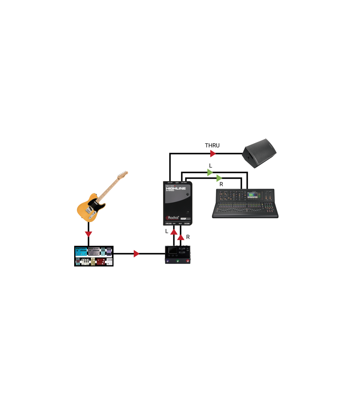 Utiliza tu simulador o modelador de amplificador sin miedo a perder señal con el Radial Highline Stereo. Esta unidad compacta convierte tu salida de línea no balanceada en balanceada, manteniendo la señal a todo volumen. Los guitarristas eligen el Highline Stereo por sus transformadores Jensen 1:1 que aíslan la señal, protegen contra la alimentación fantasma, eliminan bucles de masa y mantienen la integridad de la señal a todo volumen. La función de suma añade versatilidad, convirtiendo las tomas de entrada y de paso en un mezclador pasivo que puede sumar fuentes estéreo a mono. Todas estas funciones se duplican con las entradas y salidas estéreo, lo que te permite usar varios equipos, dividir la señal o sumar una señal XLR de estéreo a mono. Si aún tienes ruido, usa el interruptor de toma de tierra del Highline Stereo para eliminarlo. Consigue un Highline Stereo y mantén la misma intensidad de señal de salida que de entrada, protegiendo tu sonido y equipo.
