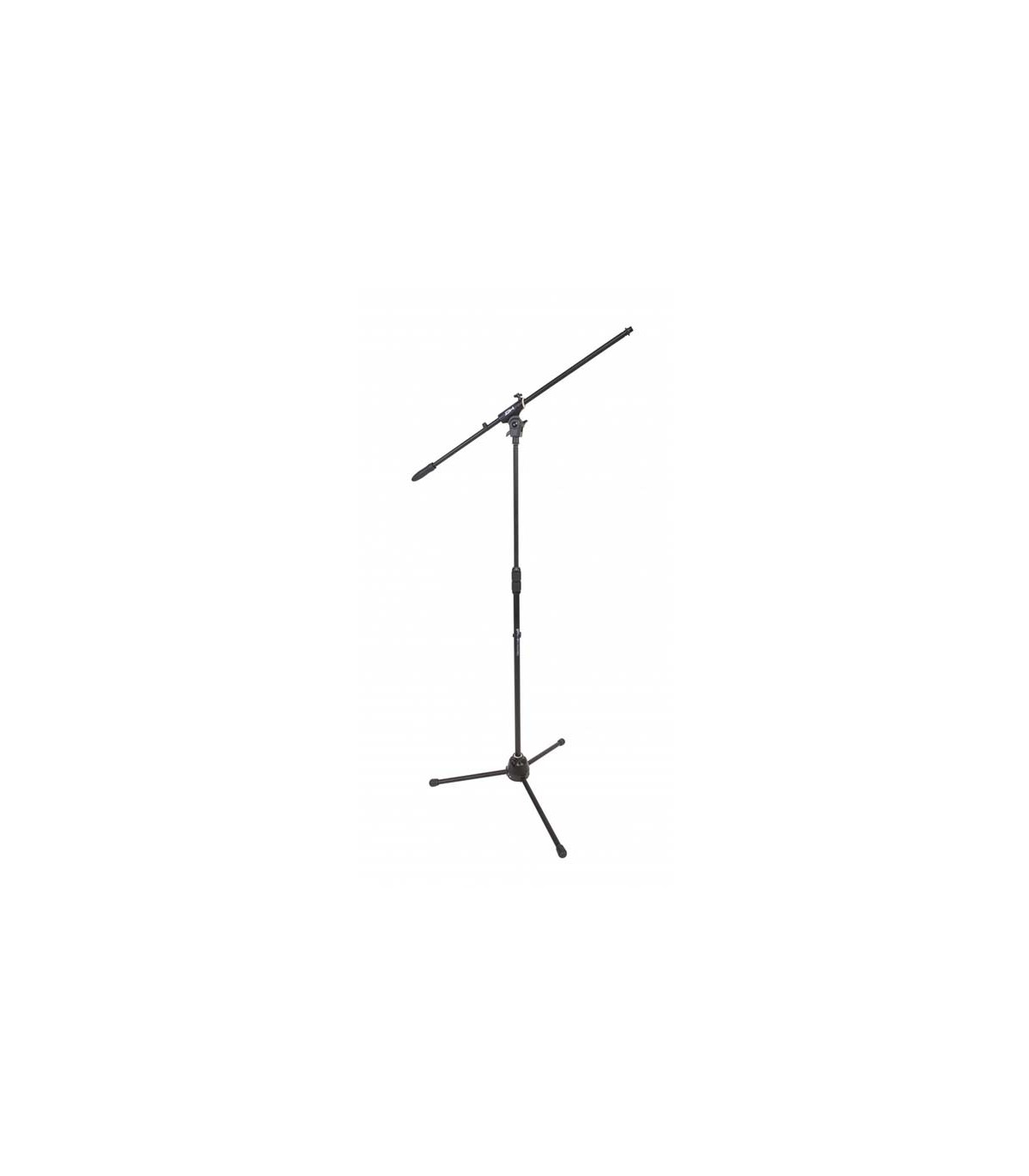 Base profesional para micrófono, trípode de aluminio fundido de alta resistencia y junta superior, con tubos gruesos de acero para una estabilidad óptima. Presenta componentes ergonómicos de alta calidad que aumentan la fricción y permiten ajustes precisos. Goma de ""agarre suave"" que permite un agarre firme para un ajuste de altura simple y seguro. Equipado con una rosca de 3/8 ""con adaptador de 5/8"" incluido. Disponible en negro mate. Dimensión base: Ø 710 mm. Altura mínima: 990 mm. Altura máxima: 1690 mm. Peso: 2.90 kg. Color: negro mate.