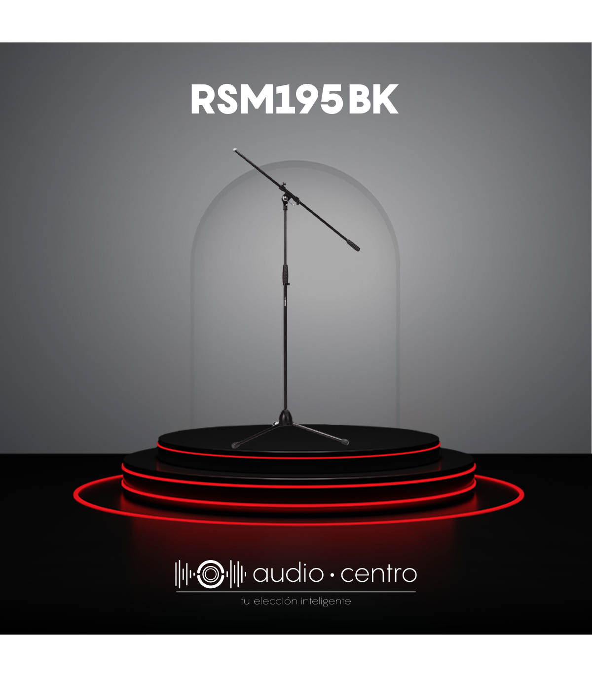 Base Proel para Micrófono con Boom RSM195BK, de piso con Boom profesional de agarre suave. Perfecto para escenarios, gracias a su versatilidad y equilibrio.