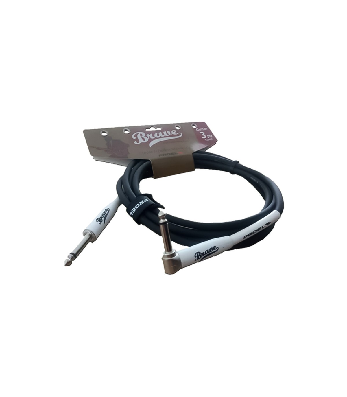 Cable de instrumento ensamblado profesional BRV120LU3BK de PROEL, con conector jack mono de Ø 6,3 mm - HPC118 - mono en ángulo recto de Ø 6,3 mm