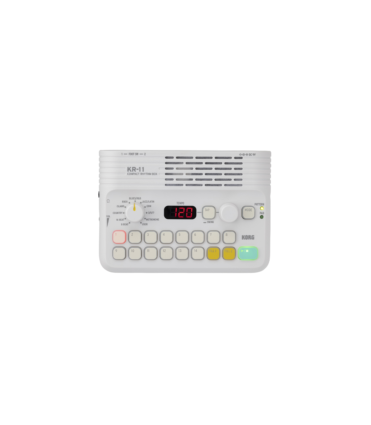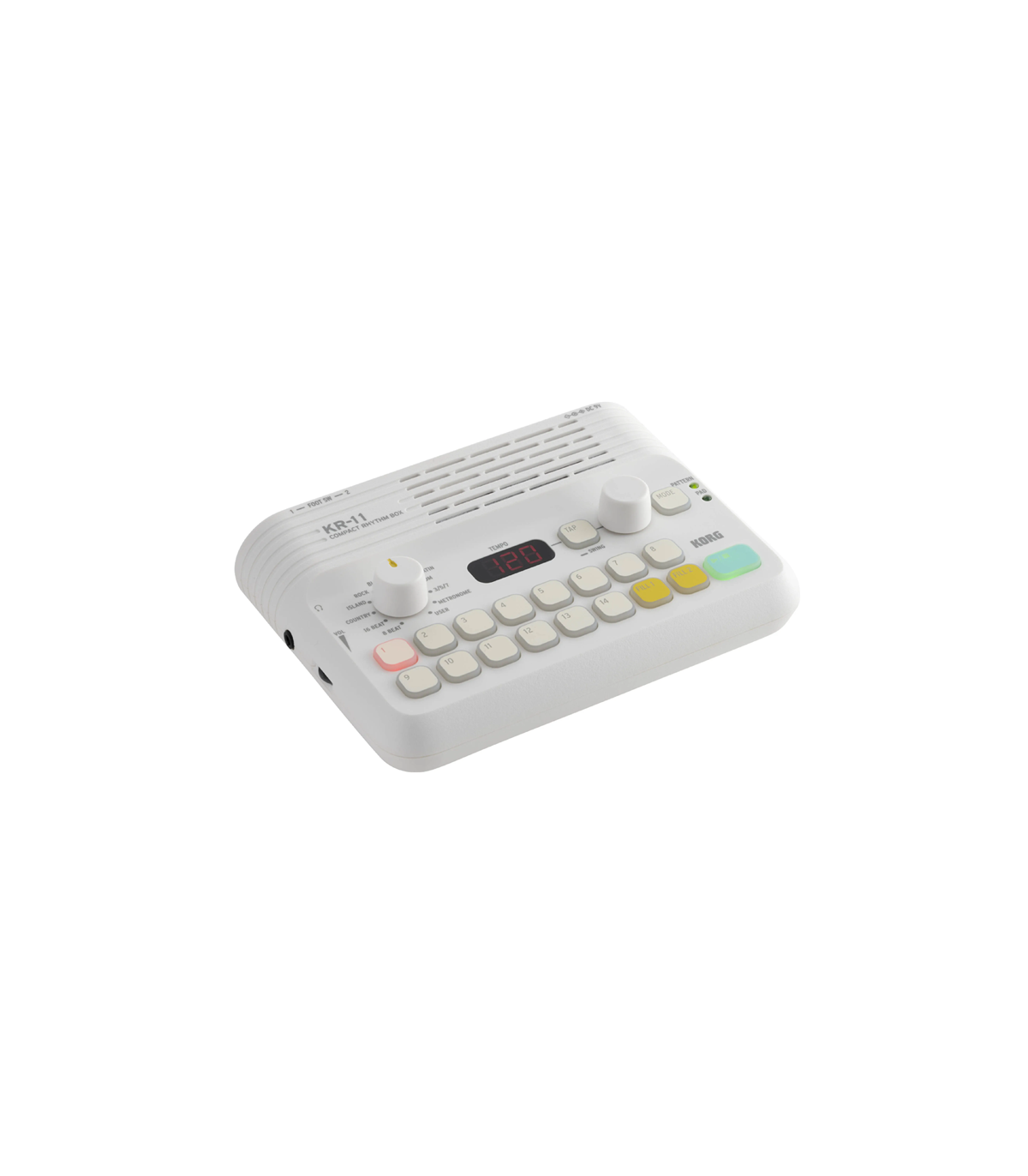 La nueva KR-11 es una caja de ritmos compacta pero repleta de funciones, que ofrece una solución portátil para aportar variedad y diversión a tu práctica musical. La caja de ritmos compacta KR-11 trae a la era moderna el legado de las cajas de ritmos, de las que fue pionero el legendario Korg Doncamatic en 1963.