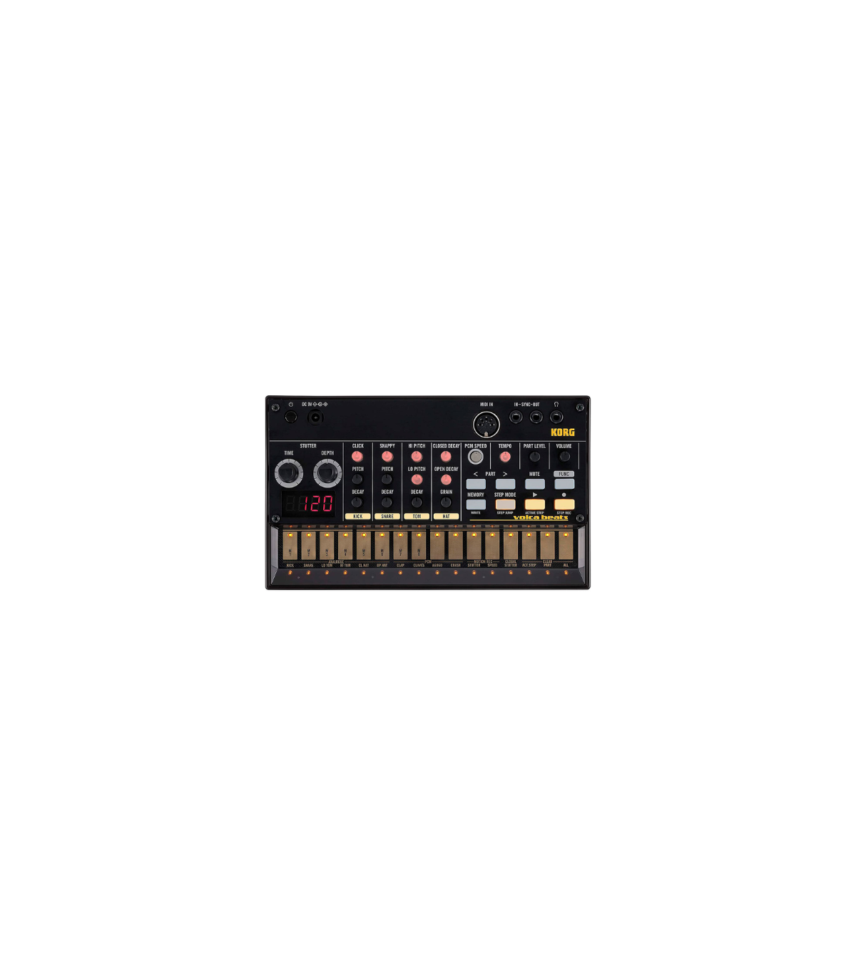 El volca beats te ofrece los sonidos analógicos de batería y la facilidad de uso del secuenciador de paso estilo Electribe; permitiéndote convertir tu inspiración en realidad y generar ritmos con los mejores sonidos.