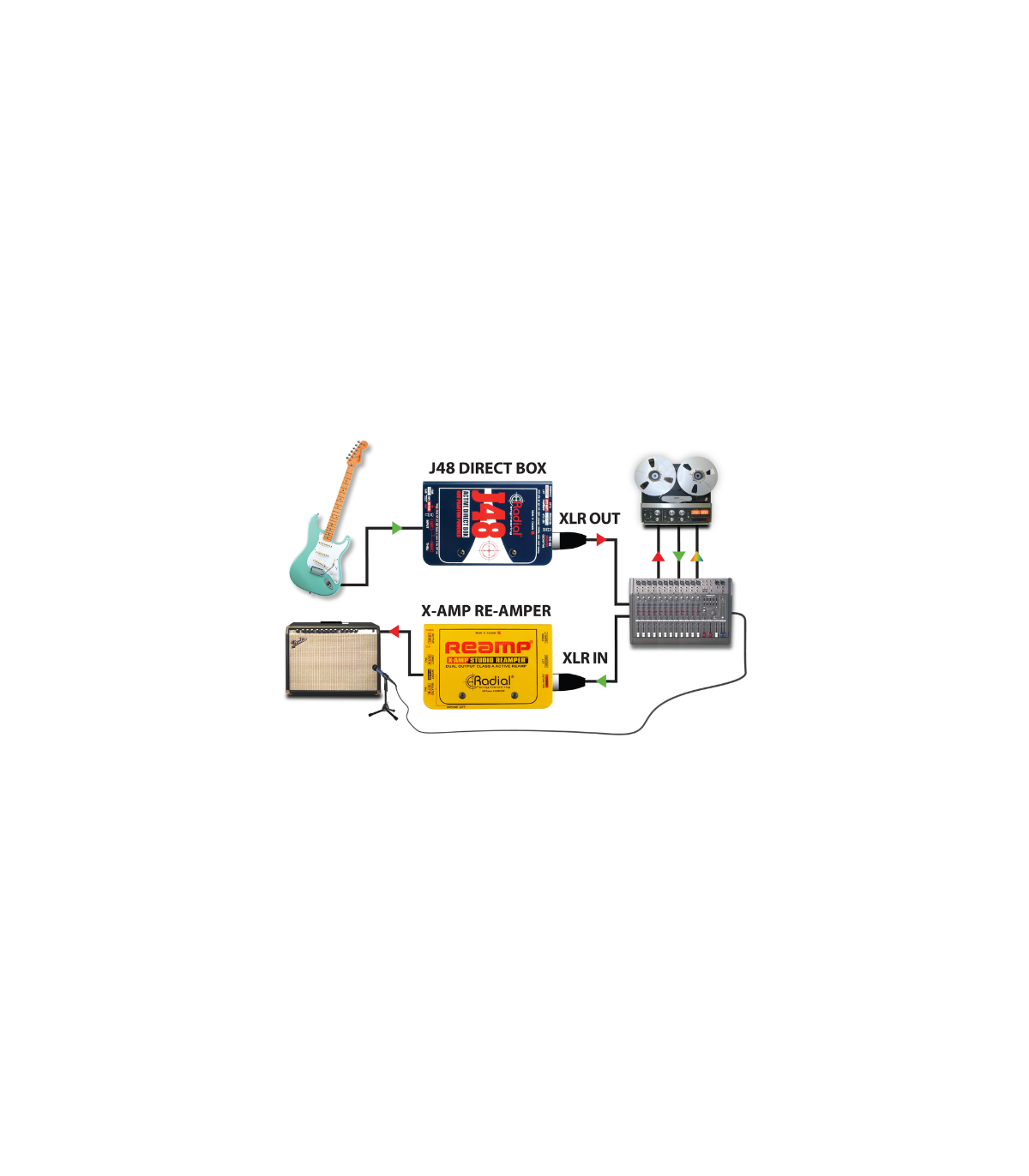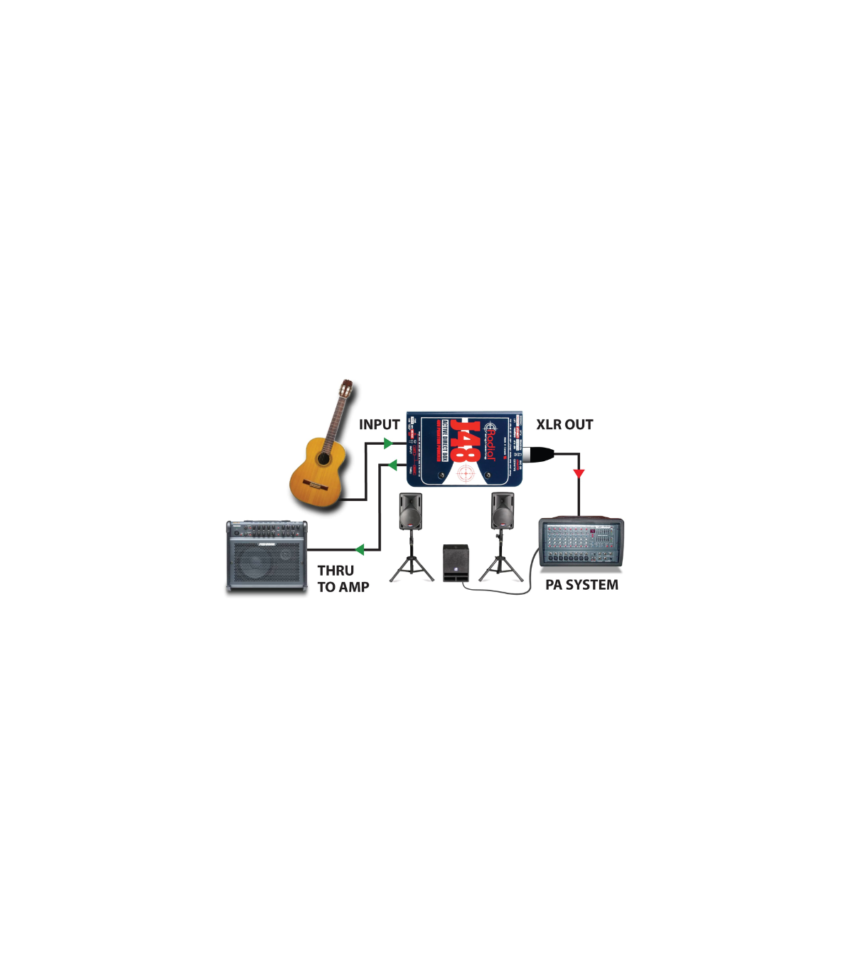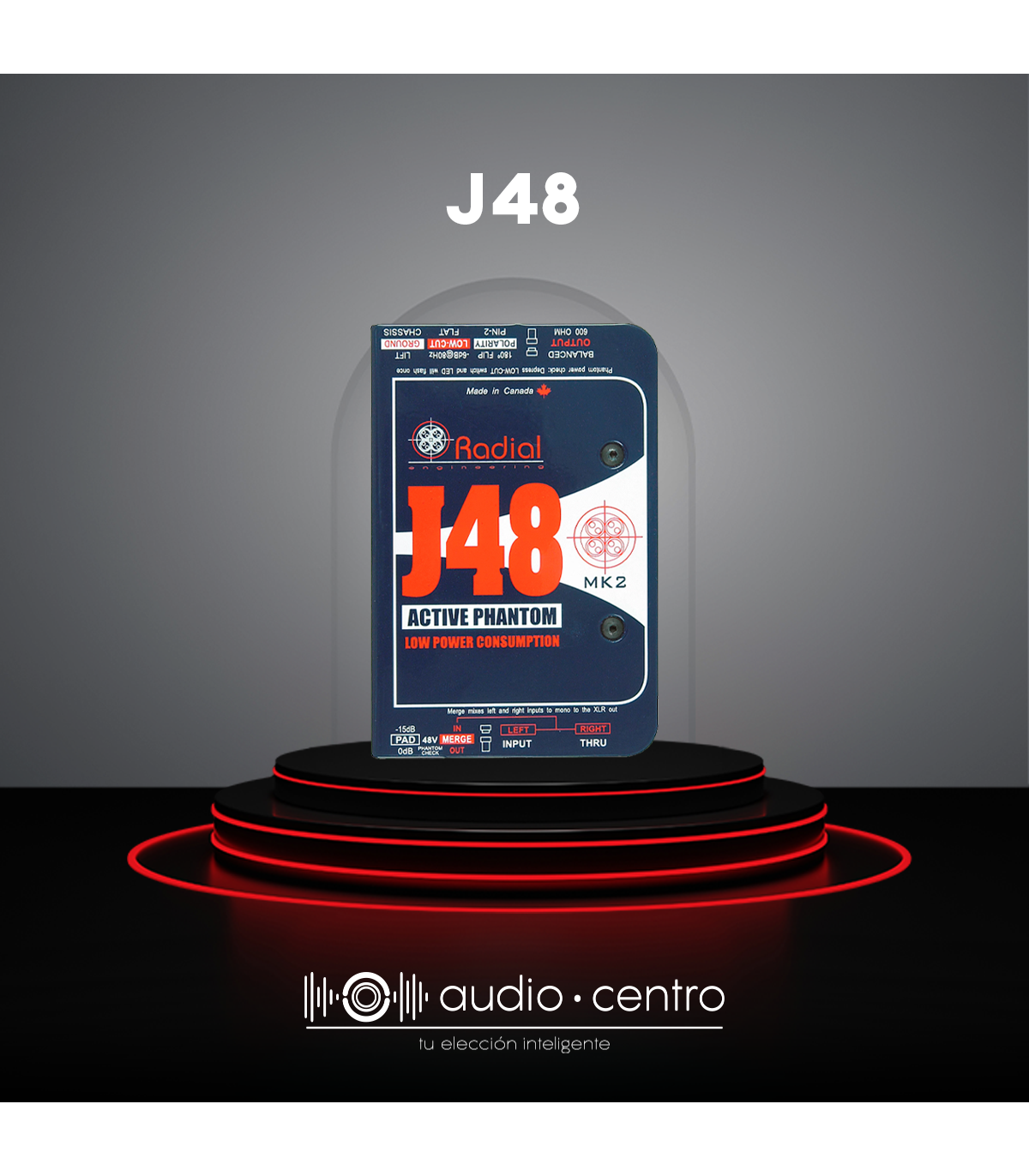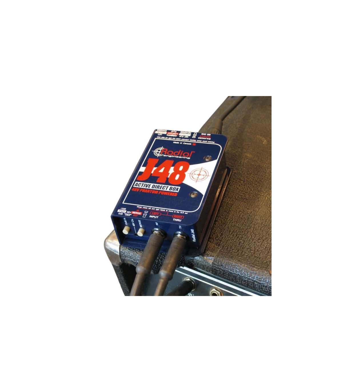 La J48 de RADIAL es la caja directa activa mas poderosa de la marca. Ideal para studio y sonido en vivo. Entrada sencilla, interruptor para sumar los instrumentos estéreo a mono • Filtro de corte bajo, -15 dB PAD y con inversión de polaridad. Se alimenta de los 48v que salen de la mixer. respuesta en frecuencia de 10Hz a 80Khz.