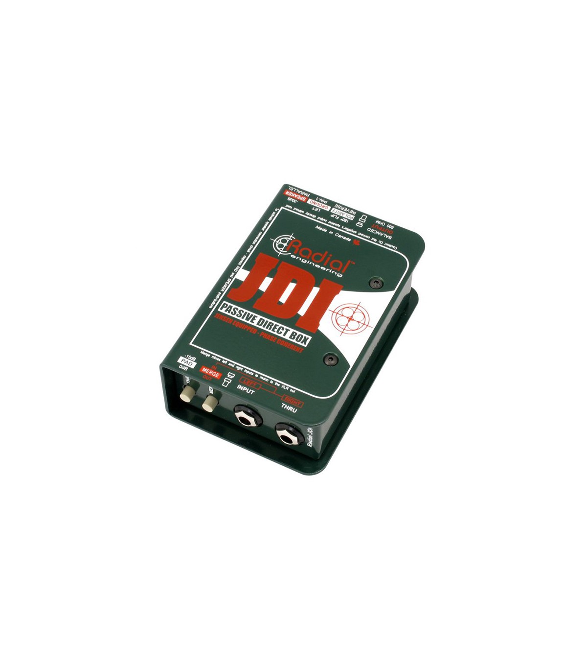 La JDI de RADIAL es la caja directa pasiva mas poderosa de la marca. Ideal para studio y sonido en vivo.Entrada sencilla, conTransformador Jensen auténtico, frecuencia Lineal de 10Hz a 40kHz , 15dB PAD para entradas de señal de alto nivel.