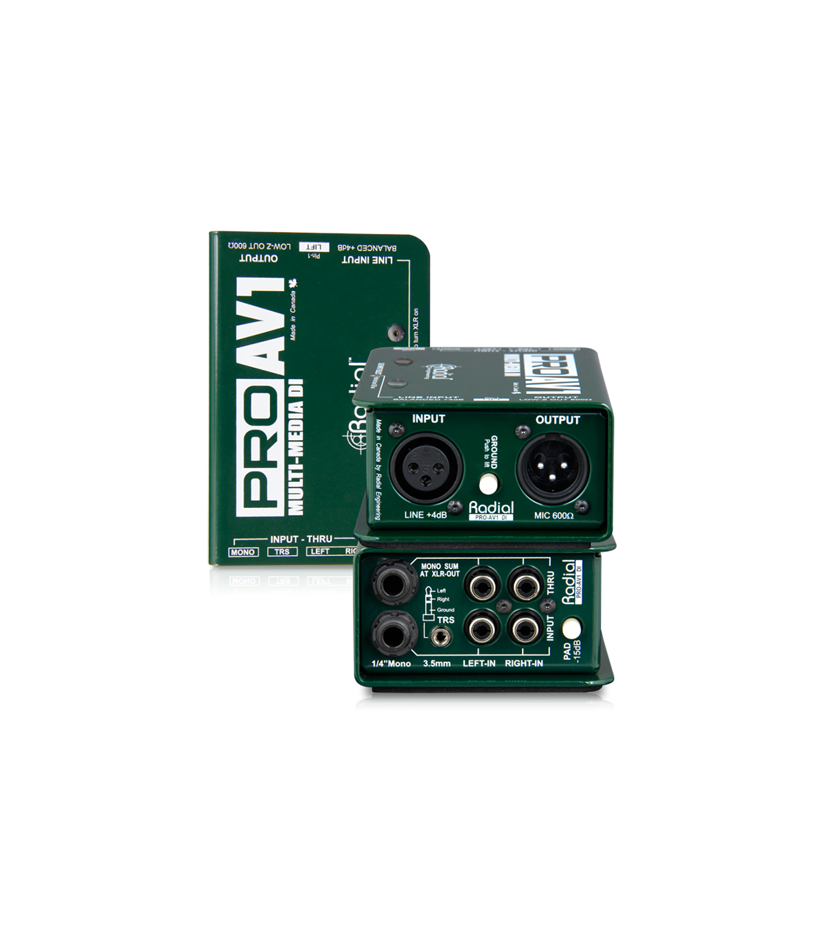 La PRO AV1 de RADIAL es una caja directa pasiva para la conexión de PC, dispositivos moviles o interfaces de audio de la serie PRO , Capaz de manejar grandes transitorios sin distorción.