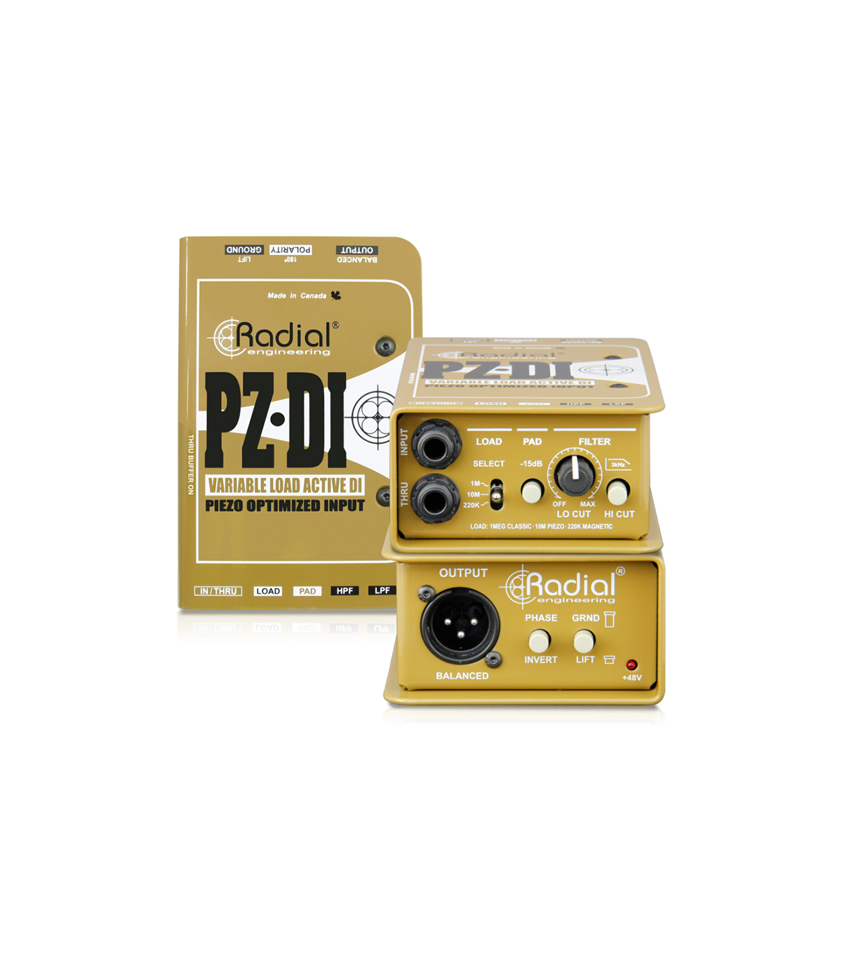 La PZ-DI de RADIAL es la caja directa activa para microfonos piezoelectricos mas poderosa de la marca. Ideal para studio y sonido en vivo. Entrada sencilla, interruptor para sumar los instrumentos estéreo a mono • Filtro de corte bajo, -15 dB PAD y con inversión de polaridad. Se alimenta de los 48v que salen de la mixer. FIltros HPF para control del hum del instrumento.