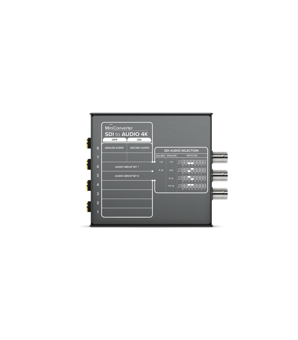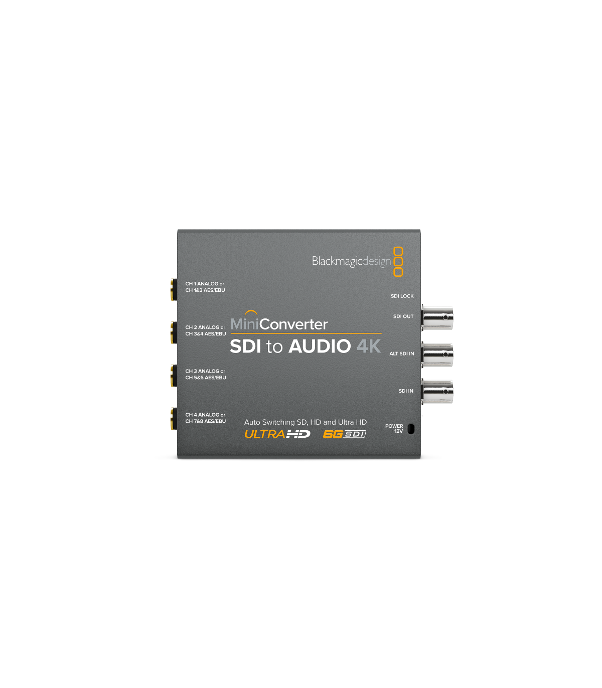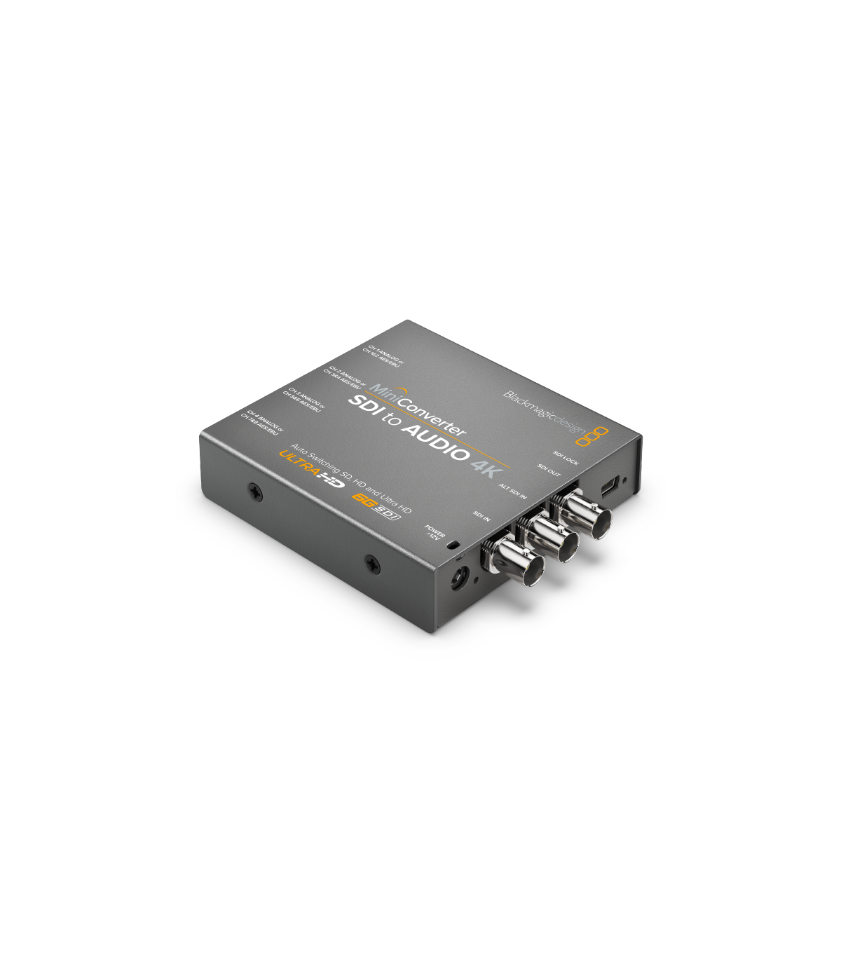 Este modelo permite obtener cuatro canales de audio analógico u ocho canales de audio digital (AES/EBU) a partir de cualquier señal SDI. De este modo, brinda la posibilidad de transmitirlos a una gran variedad de dispositivos, tales como mesas de mezcla, grabadores analógicos y monitores de audio.