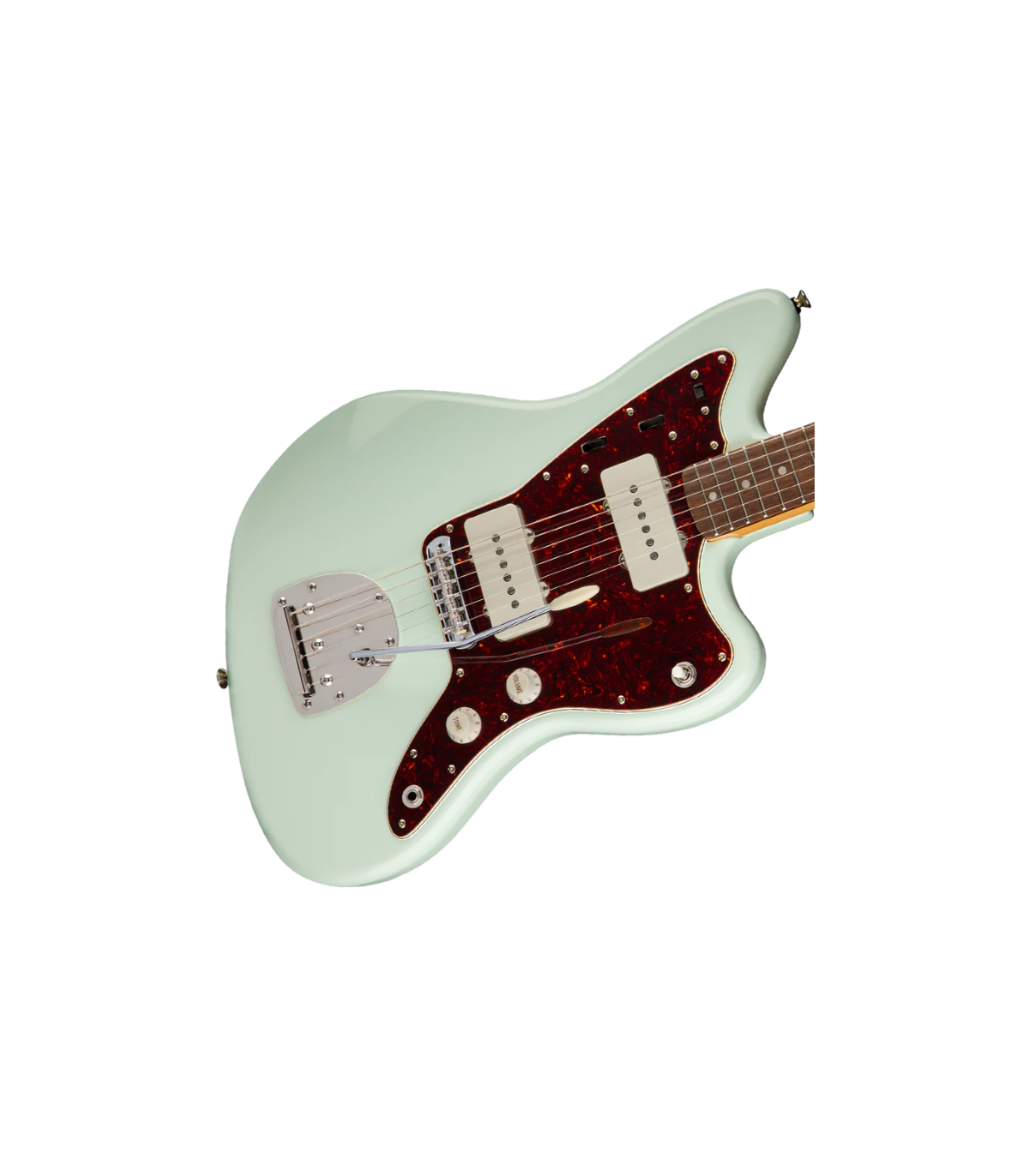 La Squier Classic Vibe '60s Jazzmaster® es un fiel homenaje a este icónico modelo de Fender, ofreciendo su inconfundible tono gracias a sus dos pastillas Fender-Designed Alnico de bobina simple. Su diseño incluye un mástil delgado en "C", diapasón de 9.5” y trastes narrow-tall para una ejecución cómoda. Además, cuenta con un trémolo de estilo vintage y un puente flotante con selletas tipo barrel para mayor estabilidad. Su estética retro se complementa con marcas en el clavijero inspiradas en los 60s, herrajes niquelados y un elegante acabado tintado en el mástil.