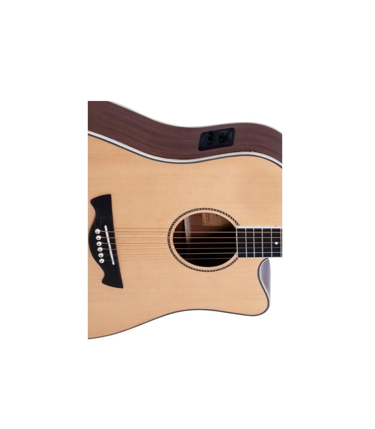 Guitarra elctroacustica Tagima Dallas Infinity 200 contruida con tapa en Spruce solido, tapas laterales en Sapele, brazo en Okoume, diapason en Ebano y preamp Fishman Presys II, incluye estuche.