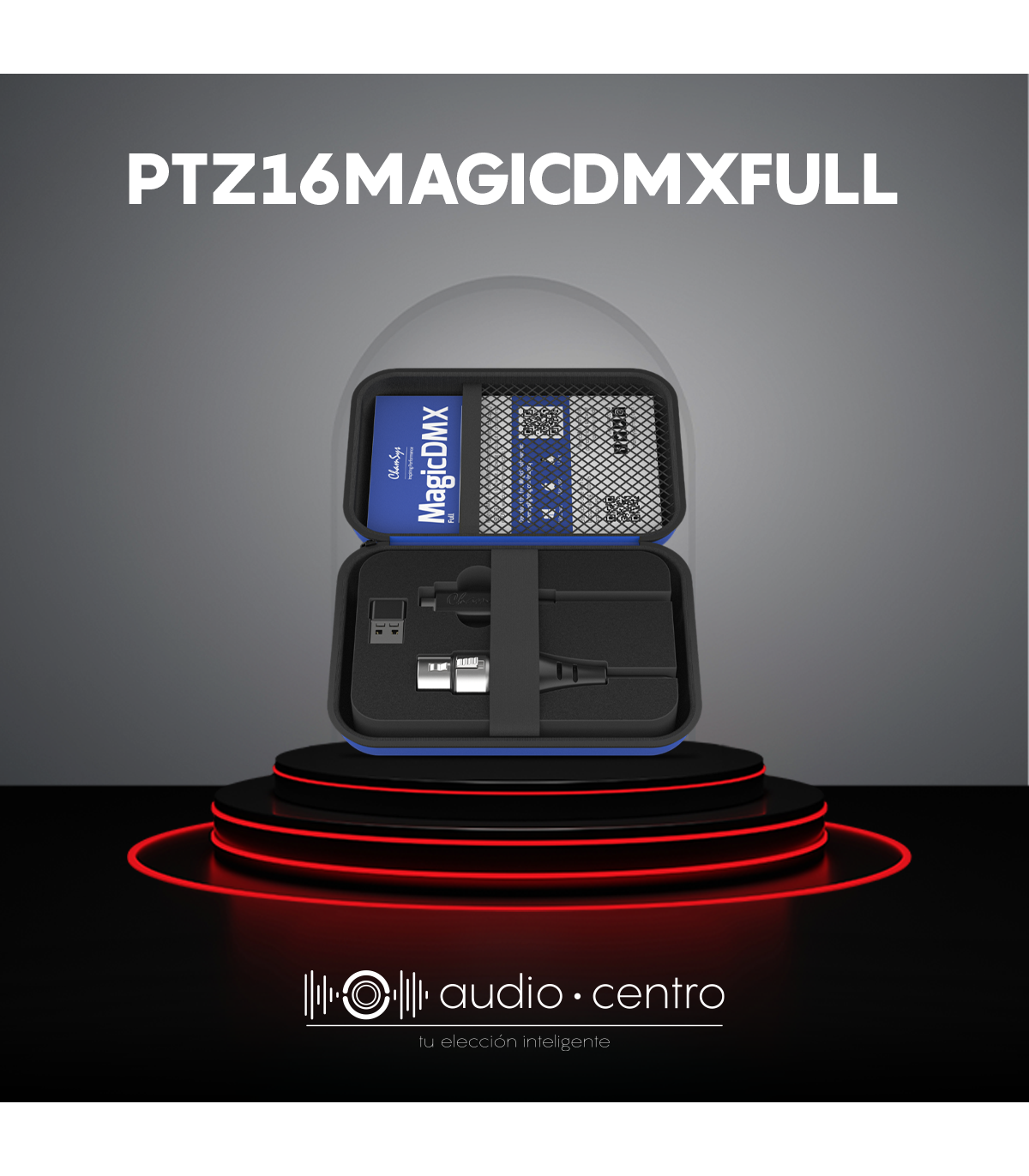 "El adaptador MagicDMX Full USB a DMX ofrece un universo completo de salida DMX sin límite de tiempo. Tiene la opción de ser usado como Salida, o como Entrada permitiendo su uso para monitorear DMX.