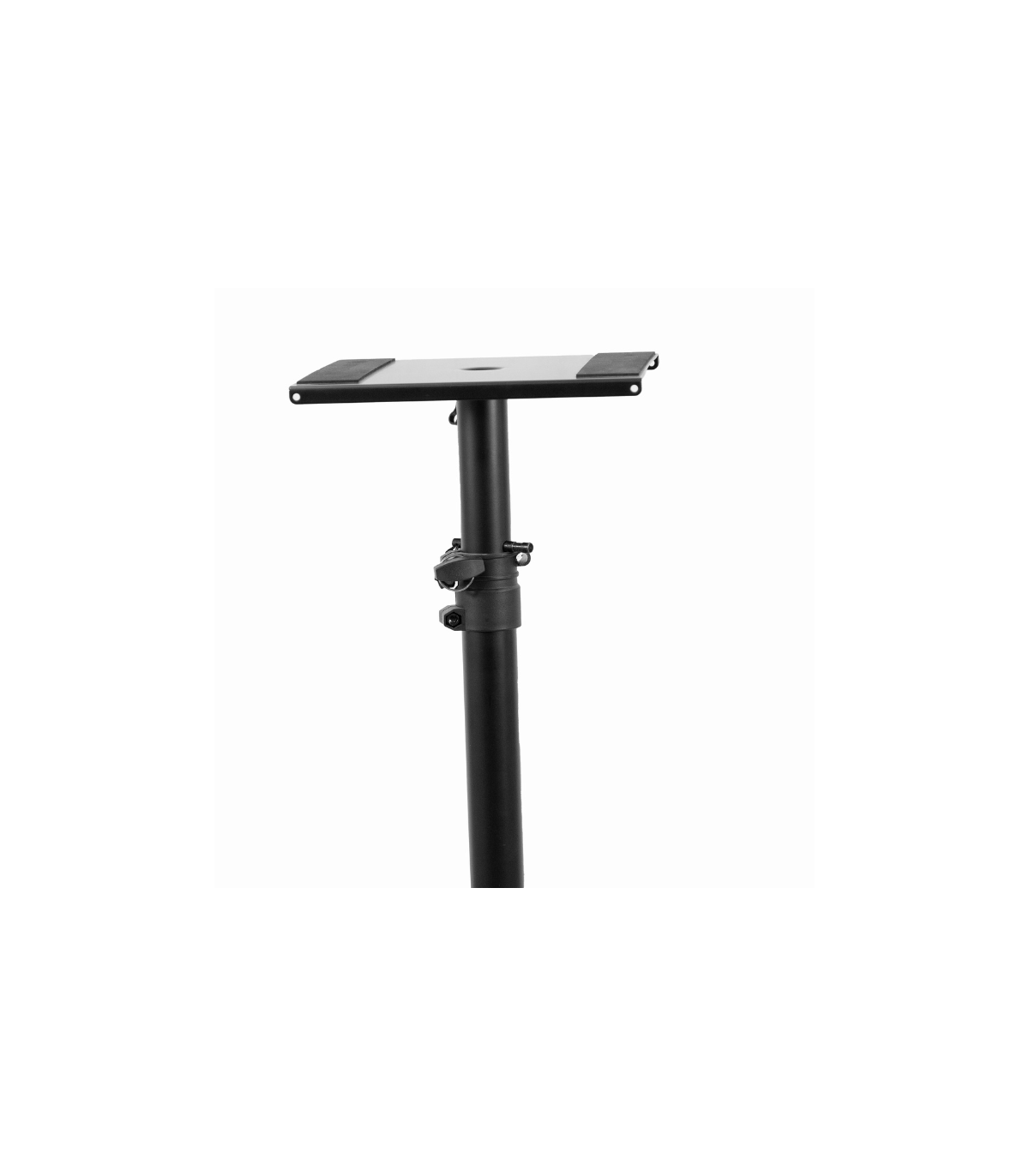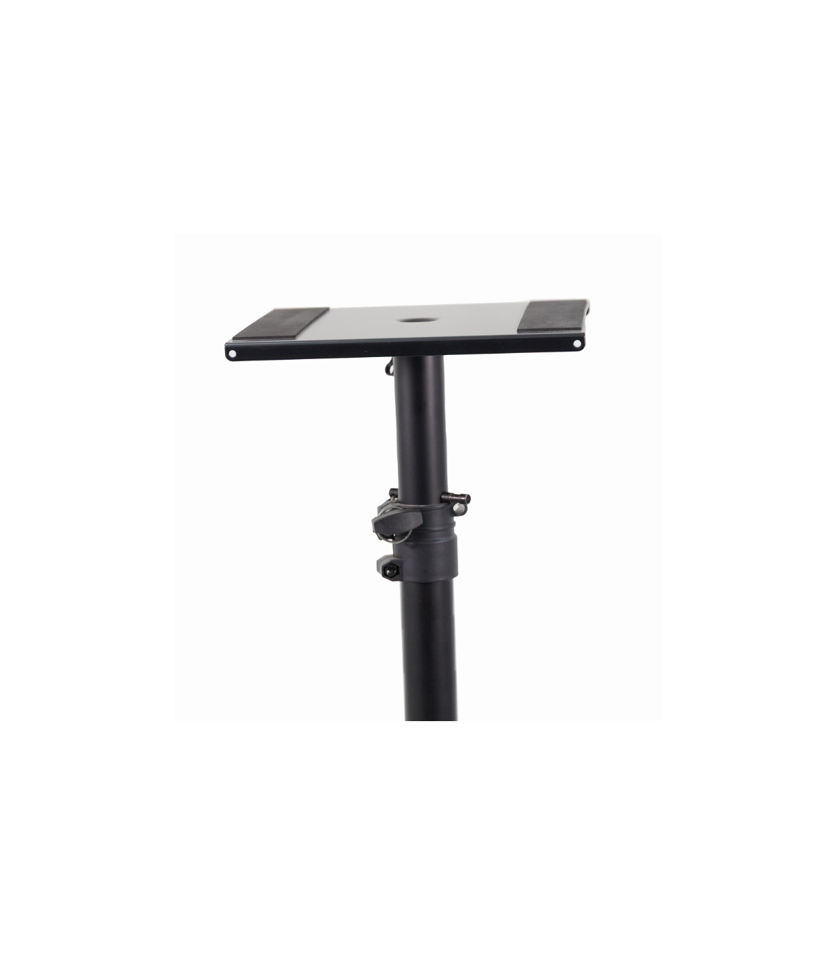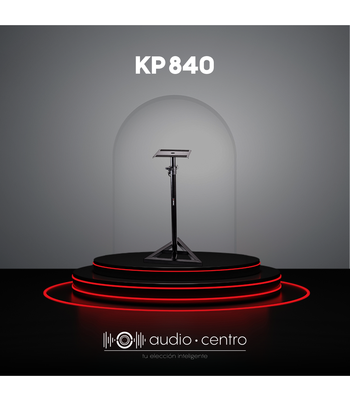 Base para monitor de estudio proel kp840 con base triangular. Dotado de patas cónicas para el aislamiento de vibración del suelo. Estructura en acero tubular con sistema de seguridad por medio de pasador regulable en altura de 850 mm a 1170 mm (cinco posiciones diferentes). 230 mm x 230 mm tamaño de la base superior. Dimensiones de base: 450 x 3 mm. dimensiones base superior: 230 x 230 mm. Altura mínima: 850 mm. altura máxima: 1170 mm. peso: 5,00 kg carga máxima: 50 kg
