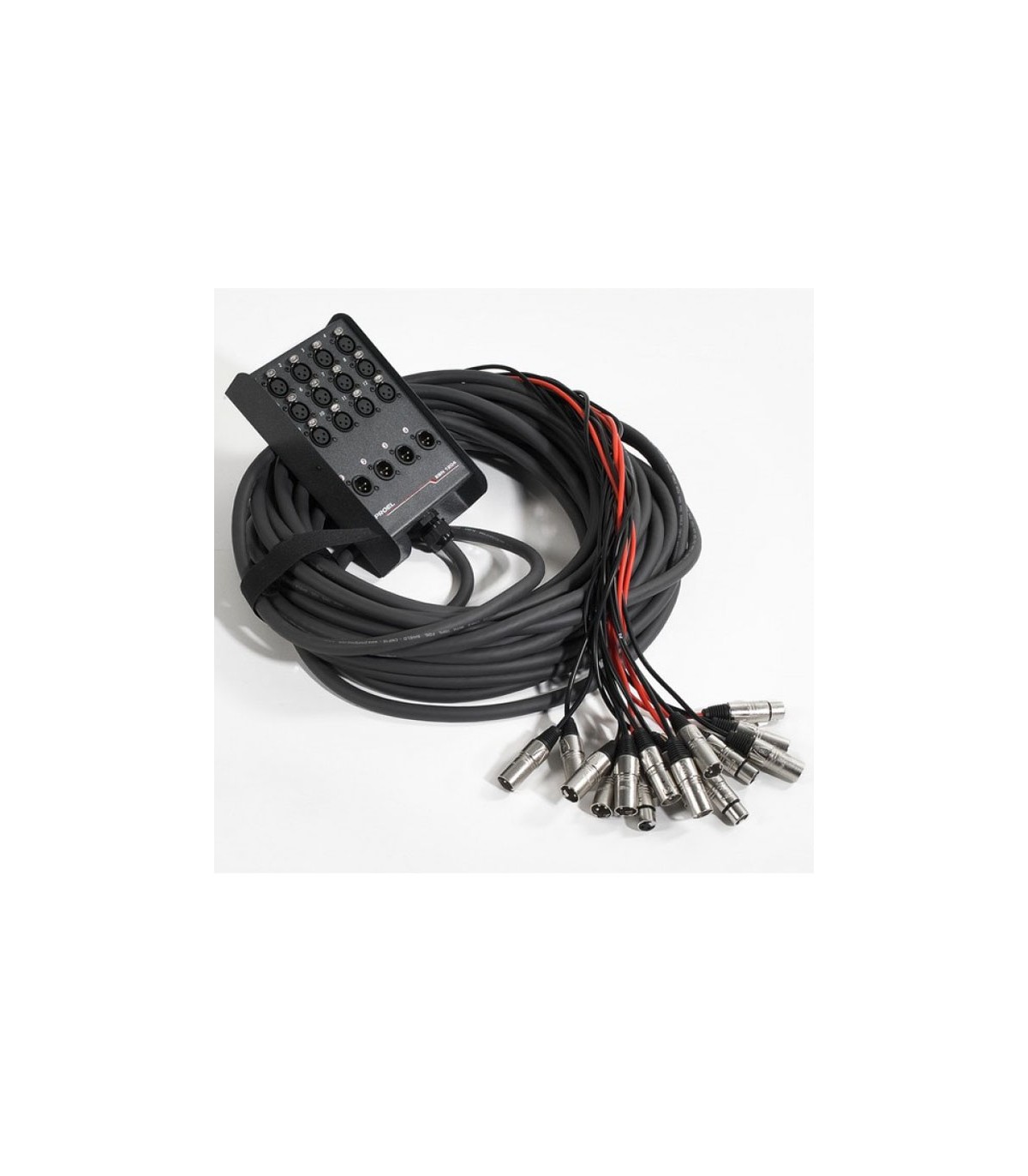 Medusa de 25 mts de largo; 12 canales XLR hembra con 4 XLR macho para retornos