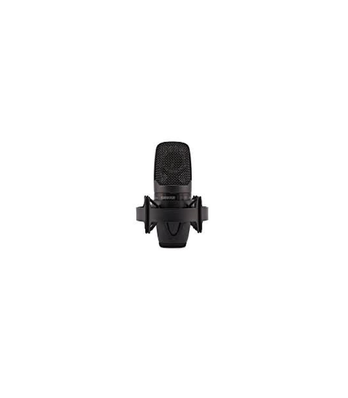 Micrófono condensador cardioide de gran diafragma y de captación lateral diseñado para conseguir un sonido nítido en grabaciones vocales y acústicas, así como en actuaciones. Dispone de un filtro pasa altos y un atenuador conmutable para una mayor versatilidad de niveles SPL.