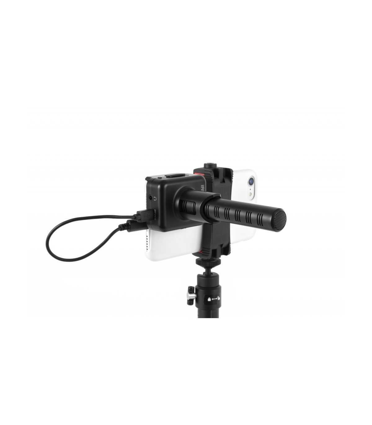 iRig Mic Video de IK MULTIMEDIA captura audio cristalino para video con este micrófono digital tipo shotgun que rechaza el ruido y sobresale entre la multitud con una calidad de producción seria.