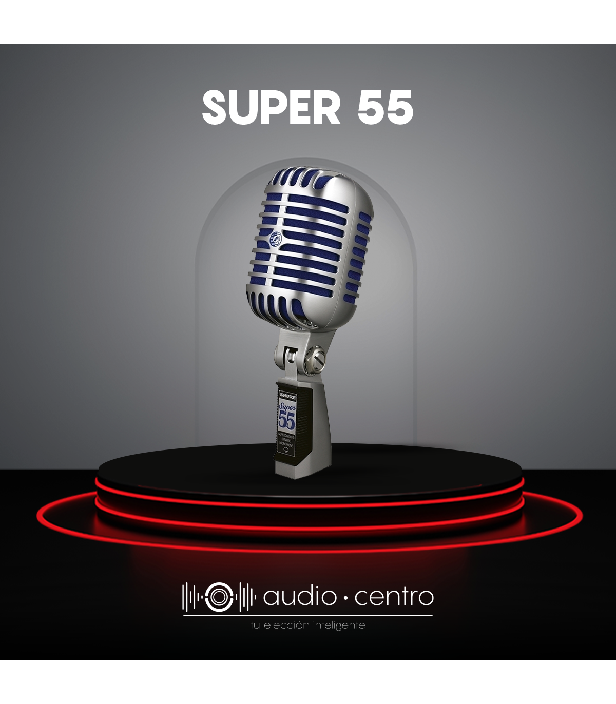 Establece una escena clásica para un público moderno, con una apariencia que haga honor al tiempo y el sonido puro y limpio de la actualidad. El Super 55 brinda el más alto grado de calidad vocal al escenario, en un micrófono vintage con soporte.