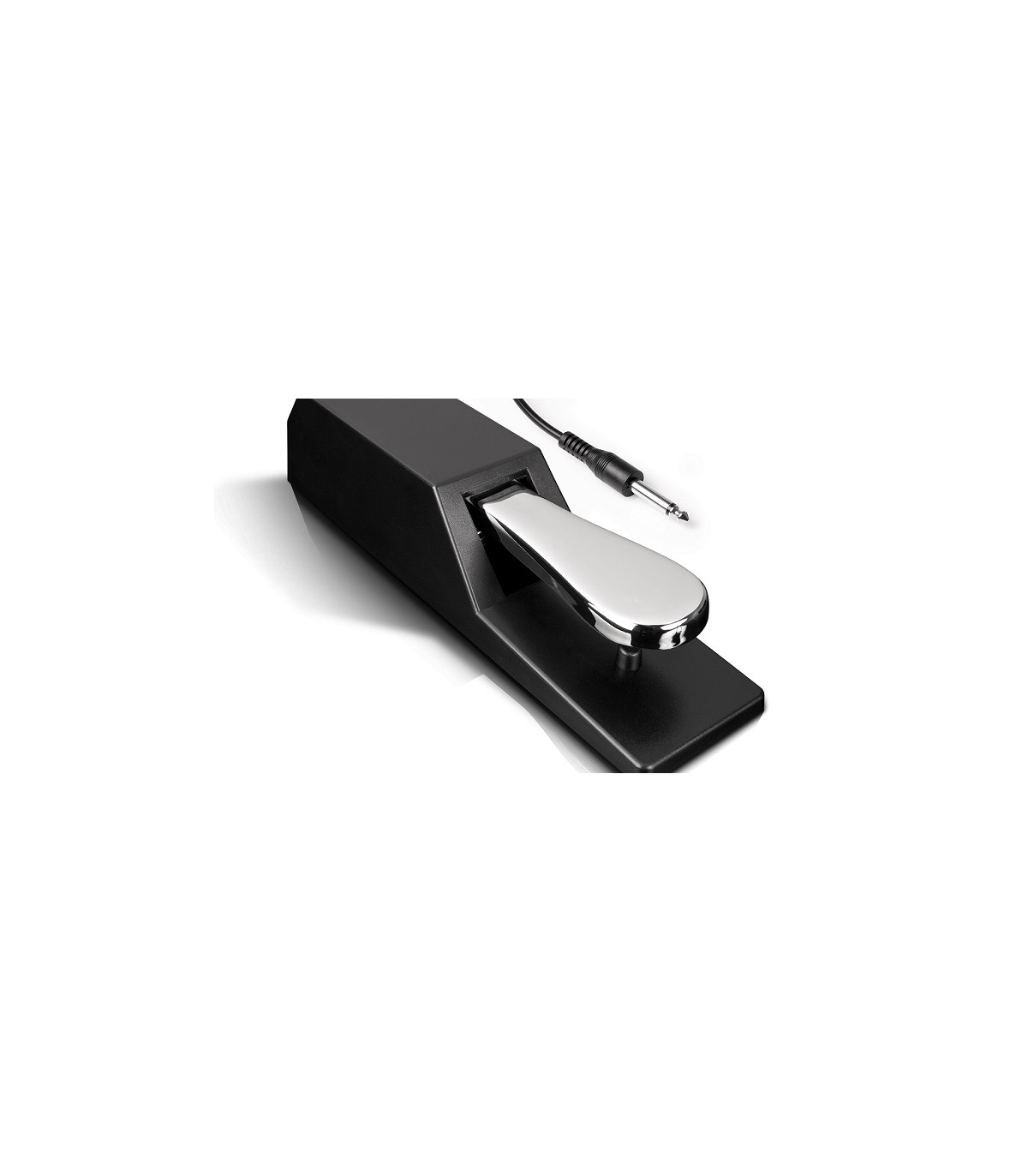 Pedal de sostenido de estilo clásico para usar con cualquier teclado electrónico diseñado para reproducir el funcionamiento y el tacto del pedal de sustain de un piano acústico, base de goma diseñada especialmente para fijarse al suelo al tocar pedal cromado de alta calidad con funciones expresivas de medio pedal incluye un cable de 2 metros con conector de 1/4 de pulgada