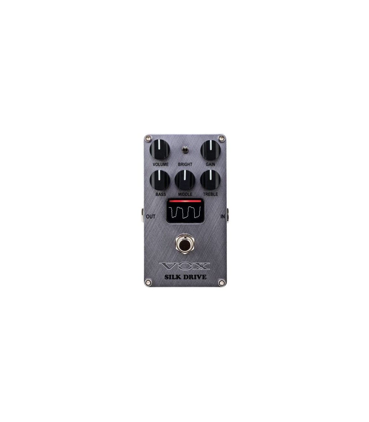 Pedal de overdrive de válvula Silk Drive ofrece tonos de overdrive dinámicos, limpios y cremosos de los amplificadores boutique clásicos en un formato de pedal compacto, pantalla OLED muestra un osciloscopio mientras el pedal está activo o anulado, lo que le permite comprender exactamente cómo se ve afectada su señal.
