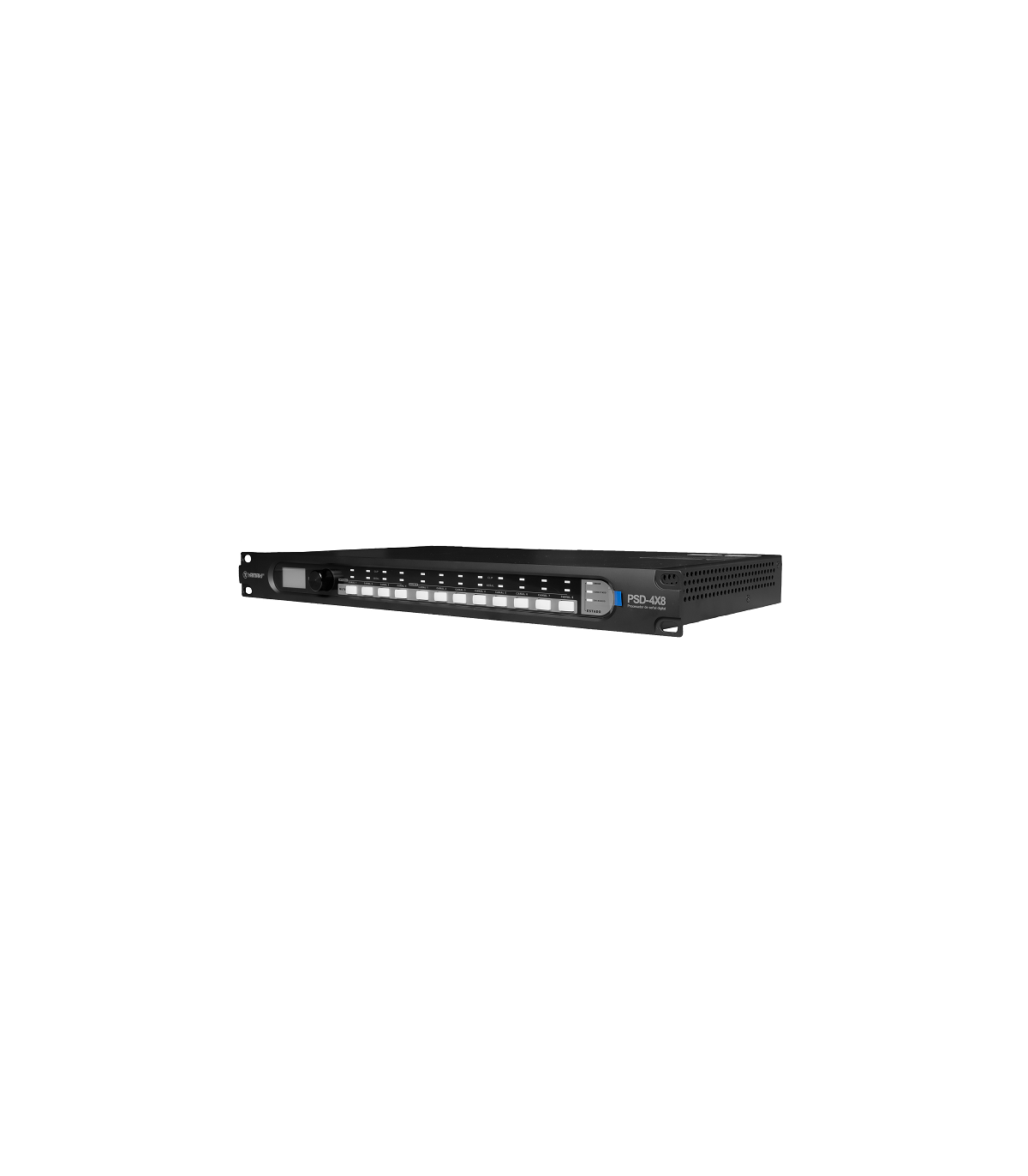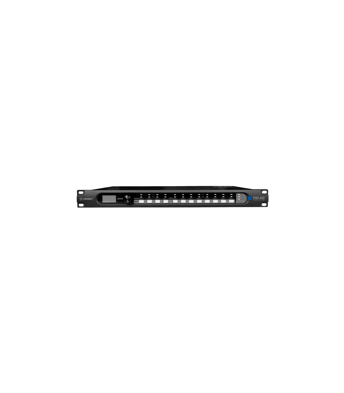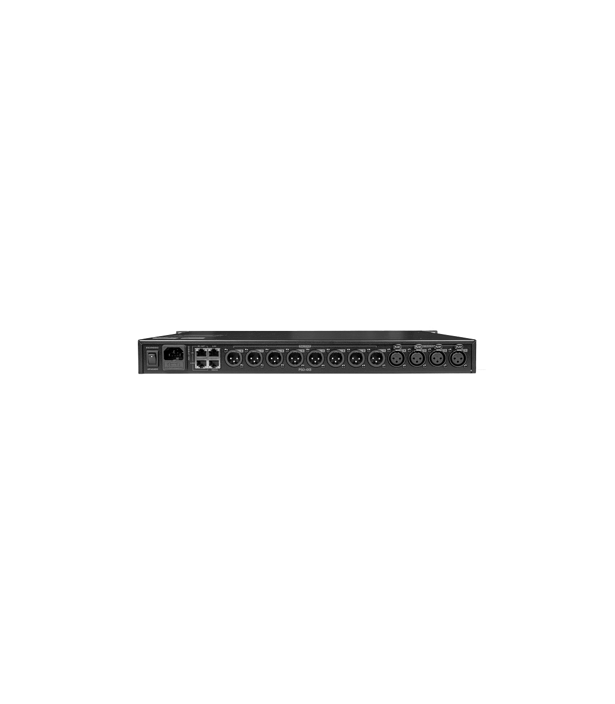 Procesador de audio digital con 4 entradas y 8 salidas con una pantalla lcd de alta definición que muestra los estados actuales en tiempo real con un puerto de red y comunicación con otros dispositivos se comporta como una matriz de audio con una gran flexibilidad de enrutamientos.