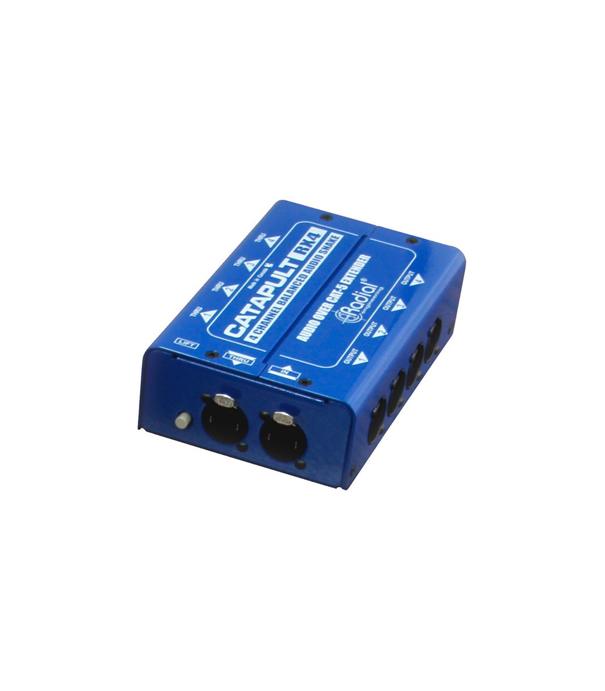 Enviar cuatro canales de audio analógico a través de un solo cable Cat 5/6. Funciona con una infraestructura de cables existente .Sustituye a los voluminosos snakes de audio multicanal de sonido en vivo. Los Catapult TX4 y RX4 actúan como un snake de audio analógico de cuatro canales; te permiten enviar señales de micrófono o de nivel de línea desde un lugar a otro sin pérdida de señal, ruido o interferencia, y sin necesidad de ninguna conversión de audio digital. Tambien es un splitter que permite copiar la señal que se conecte en su input o se envie en su señal RJ45 (CAT5/6)