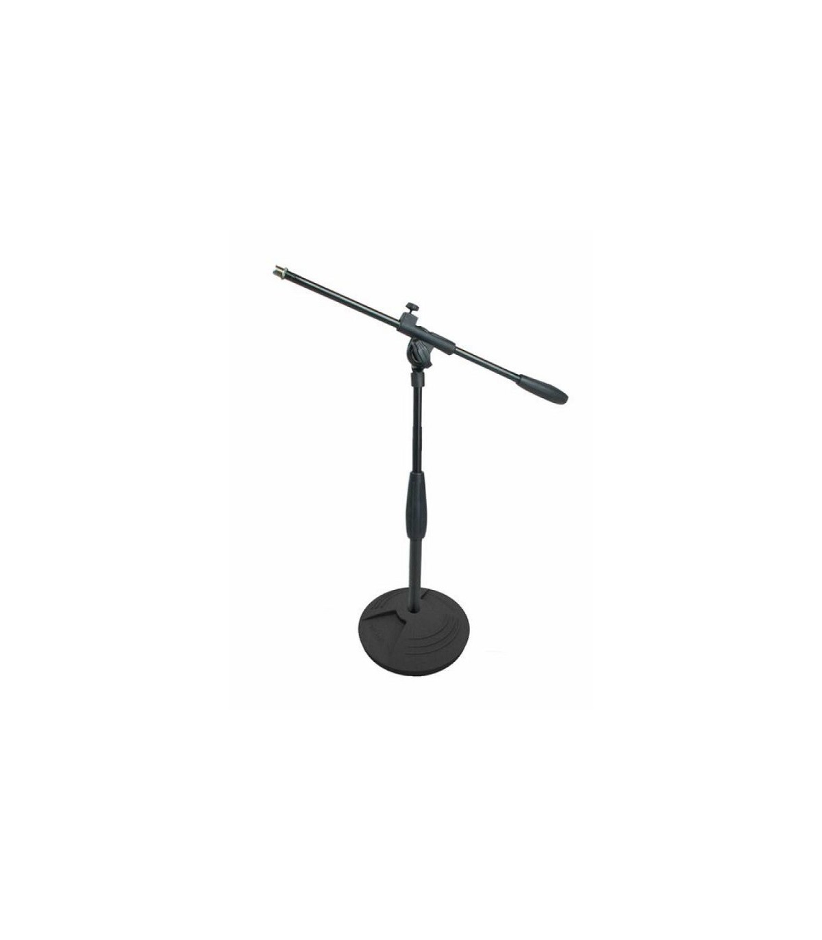 Soporte de micrófono ajustable en altura de bajo nivel con brazo fijo proel DST140BK. Con anillo de goma antivibración base de hierro fundido. Diámetro de la base 180mm - Altura: 305 mm / 410 mm. Disponible en acabado negro mate