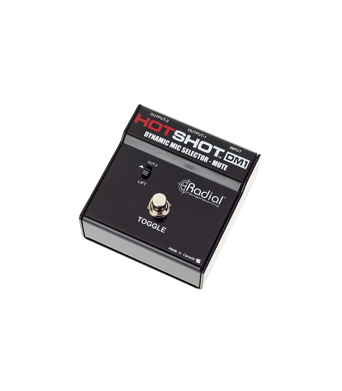 El HOT SHOT DM1 es un Switch selector de 2 salidas para microfonos tipo pedal de piso marca RADIAL, que permite la interconexión entre un microfono y la consola de FOH o la consola de monitoreo.